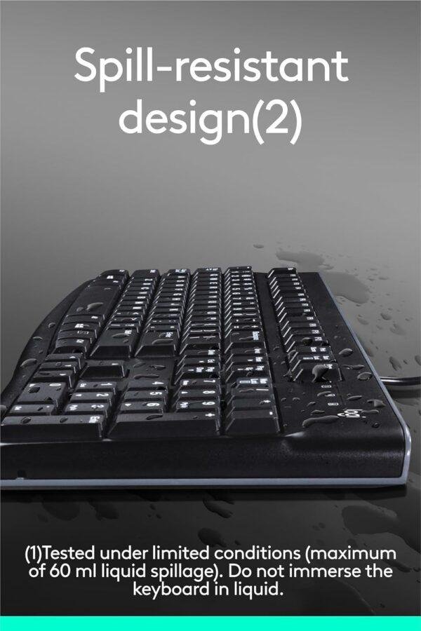 - Durable and Reliable: This USB keyboard features a curved space bar, spill-resistant design (2), durable keys that can withstand 10 million keystrokes, and sturdy, adjustable tilt legs.